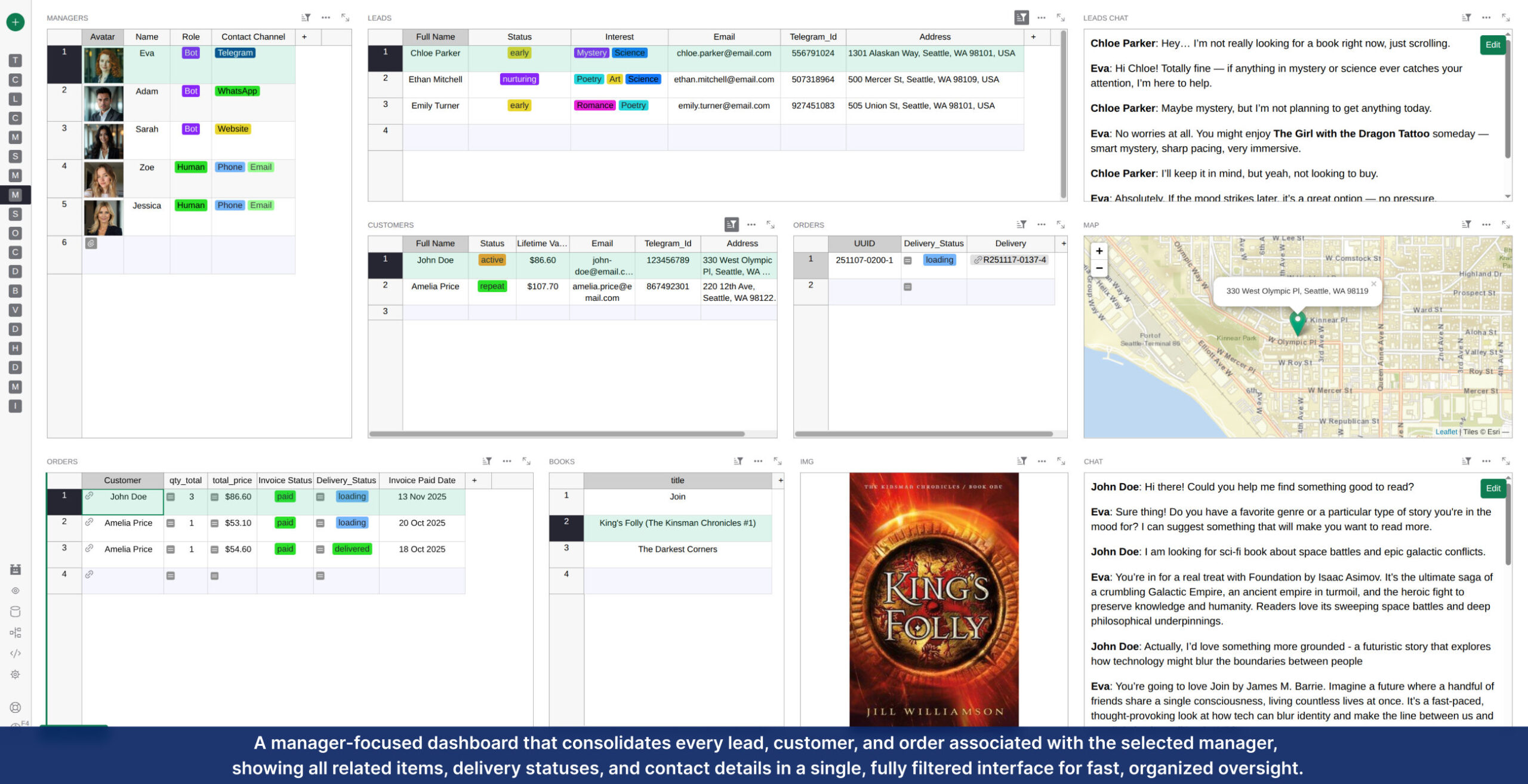 We build fully automated CRM and business management systems powered by Grist and n8n – connecting customer records, orders, invoicing, communication, delivery logistics, HR, and operations into a unified workflow.