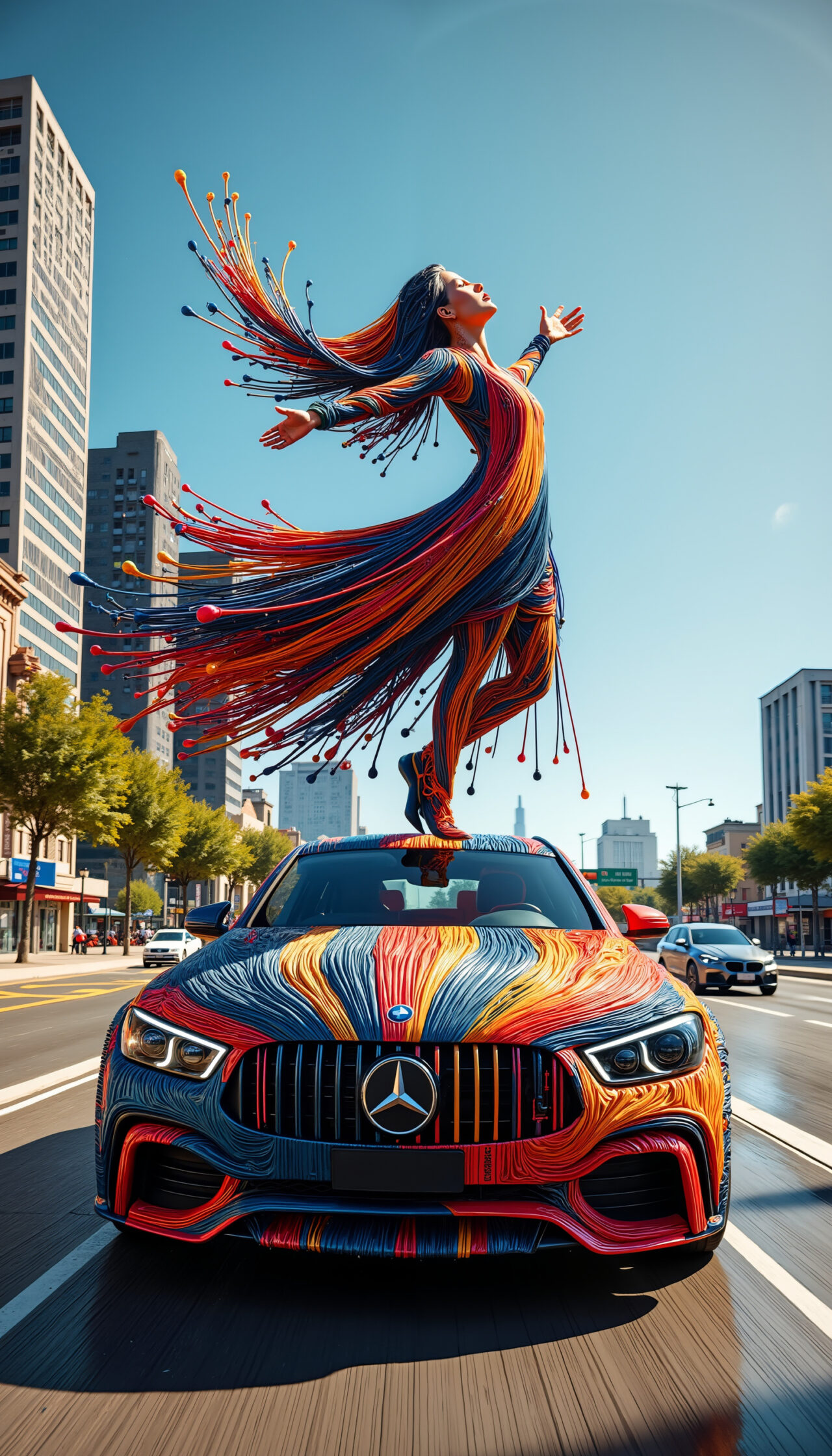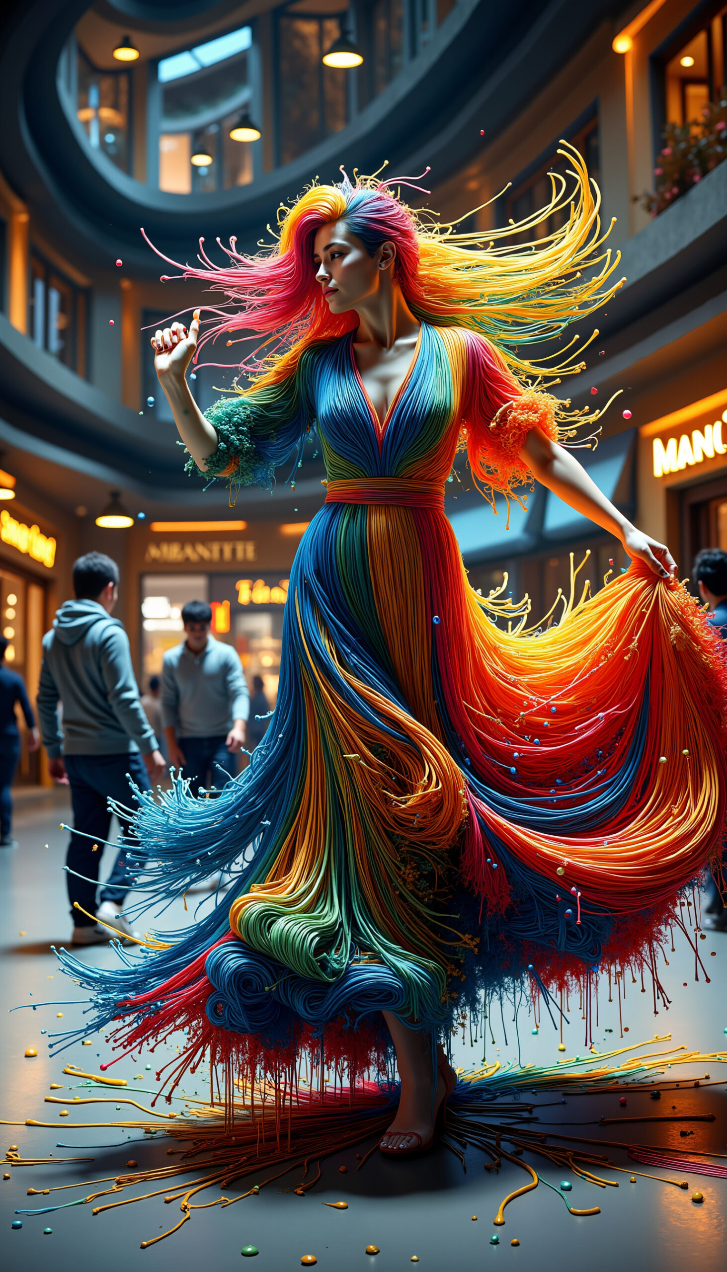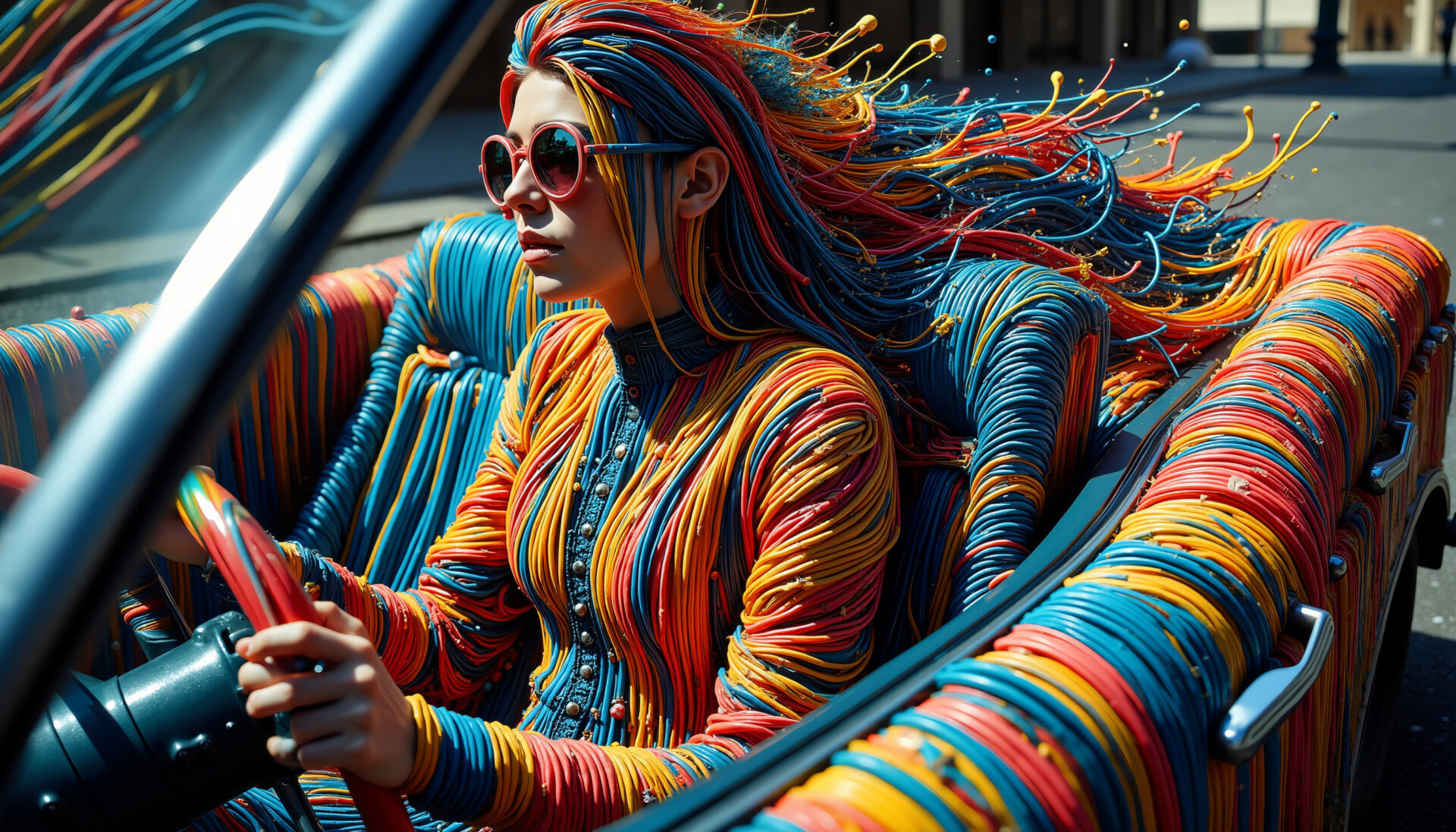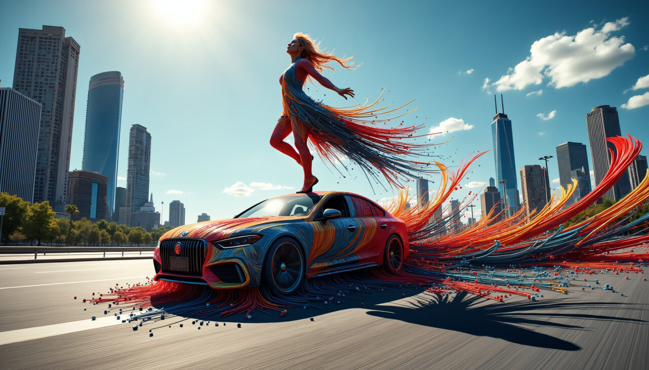 Color Noodles is a vibrant burst of motion, where characters, clothing and even cars unravel into flowing neon threads. Streets turn into canvases, fabric becomes paint, and movement leaves trails of radiant color like digital ribbons in the wind. This energetic series embodies joy, speed and visual rhythm – ideal for creative campaigns, fashion concepts, music videos, motion graphics and dynamic character art.