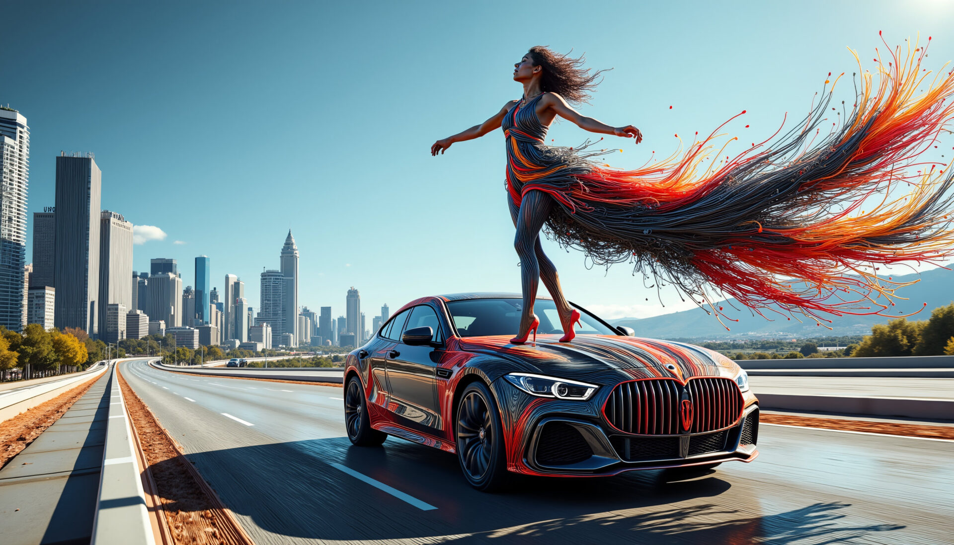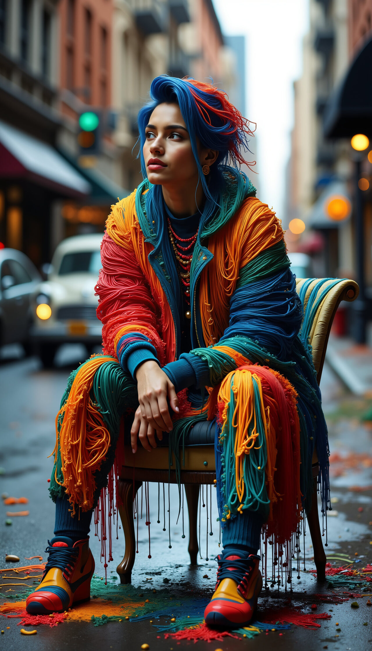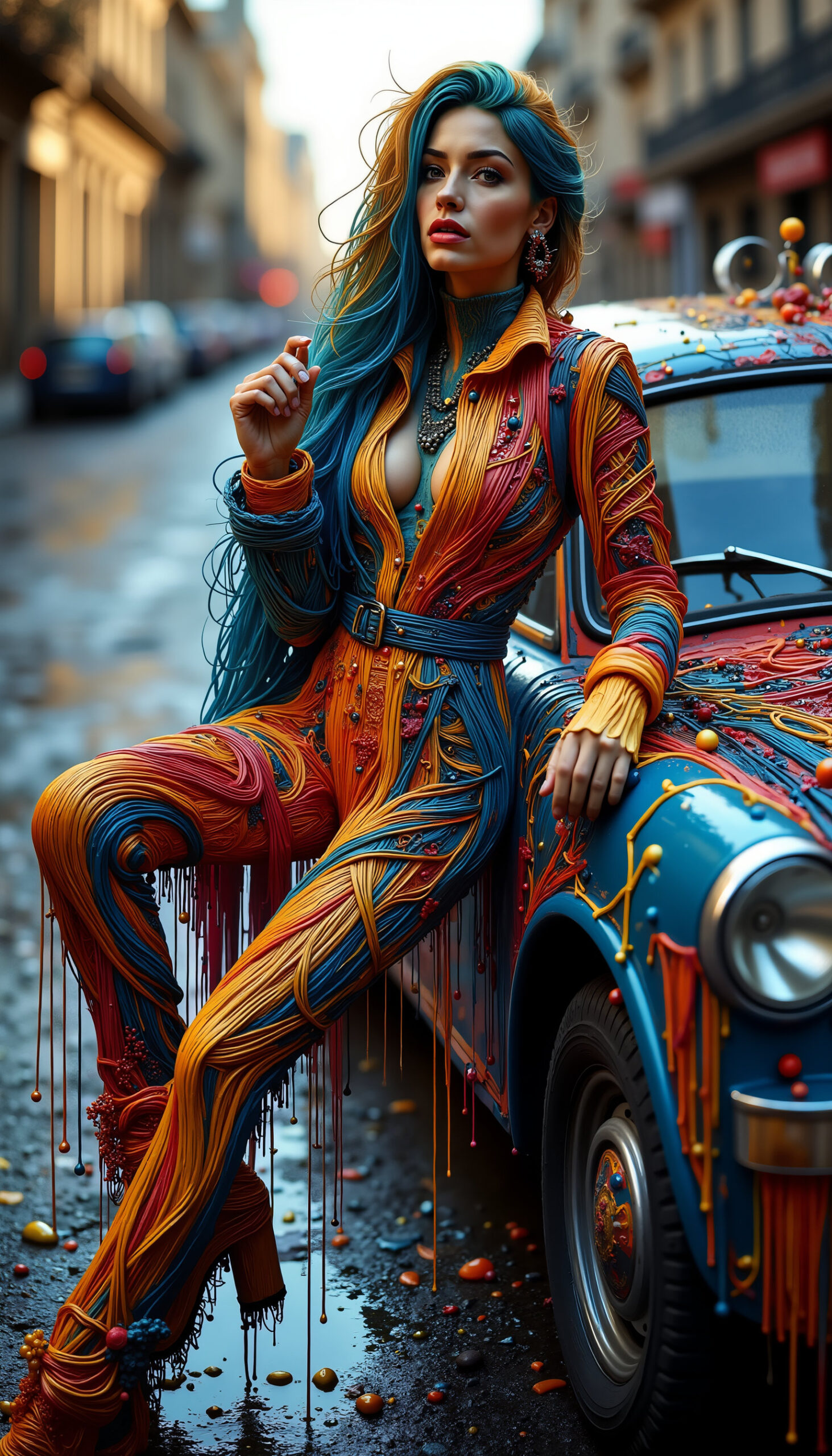 Color Noodles is a vibrant burst of motion, where characters, clothing and even cars unravel into flowing neon threads. Streets turn into canvases, fabric becomes paint, and movement leaves trails of radiant color like digital ribbons in the wind. This energetic series embodies joy, speed and visual rhythm – ideal for creative campaigns, fashion concepts, music videos, motion graphics and dynamic character art.