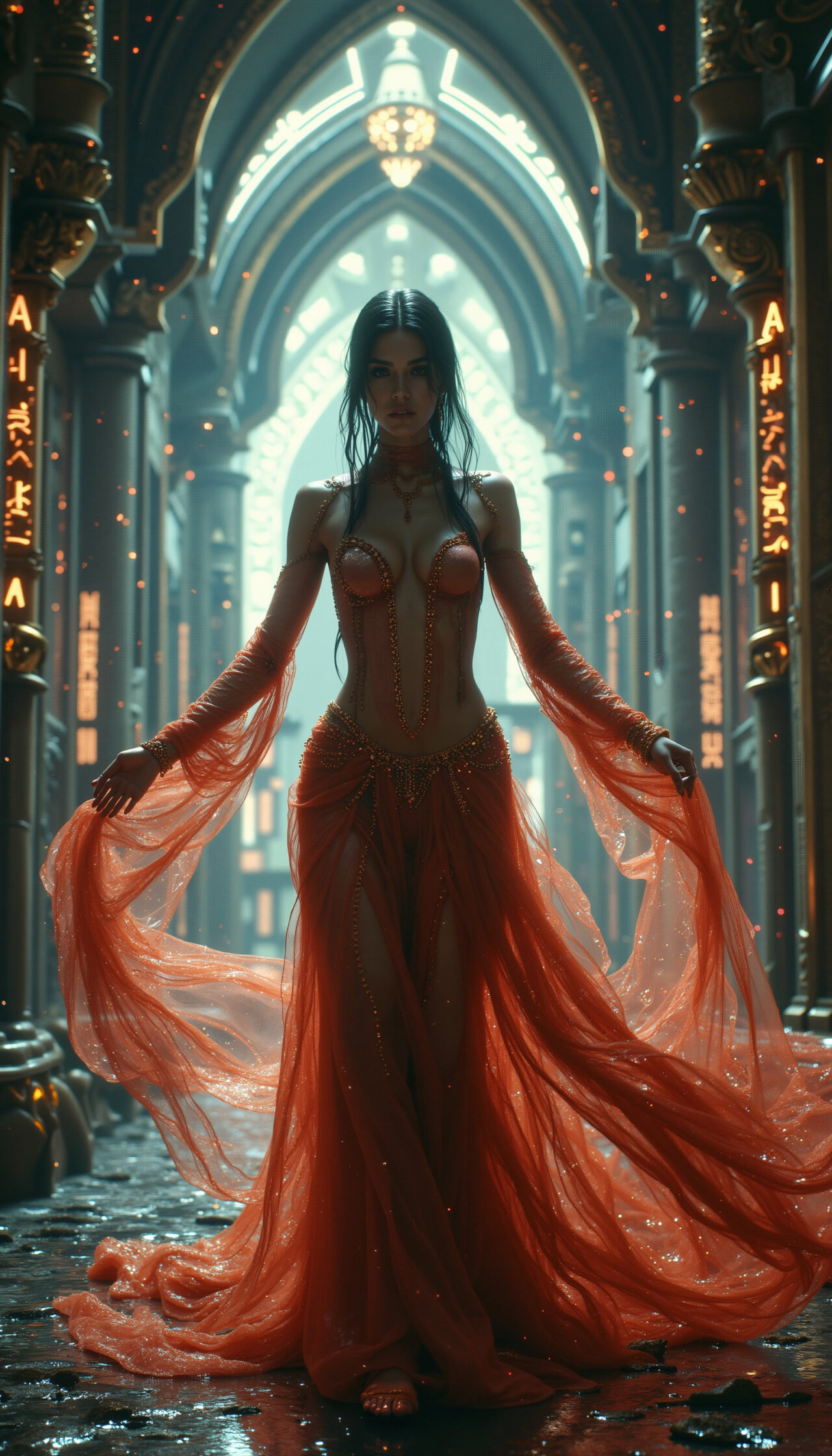 Dark Sanctum is a cinematic collection steeped in mysticism, arcane architecture and regal power. Enigmatic queens channel luminous magic, ancient halls glow with runes, and fabric flows like living shadow amidst grand cathedrals of stone. These visuals evoke fantasy lore, dark epic worlds and high-fashion sorcery aesthetics – perfect for concept art, character design, book covers, fantasy campaigns and visual storytelling.