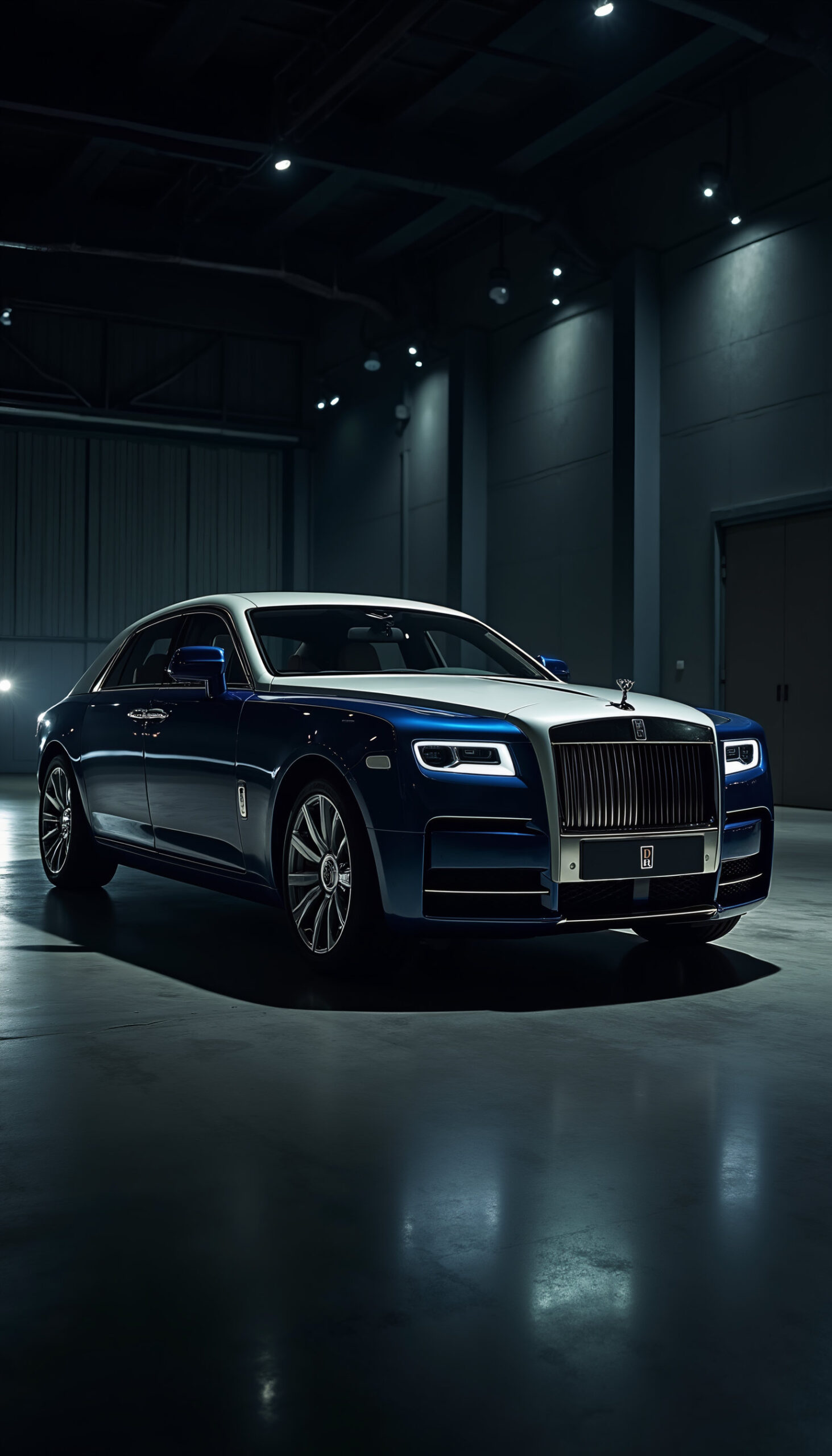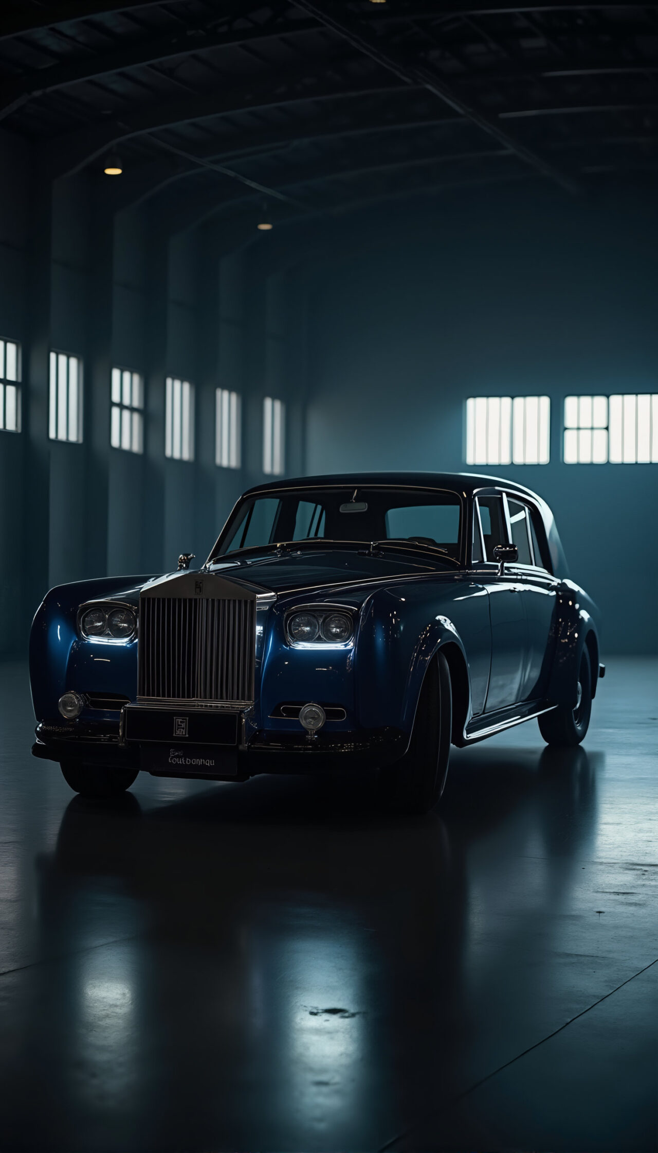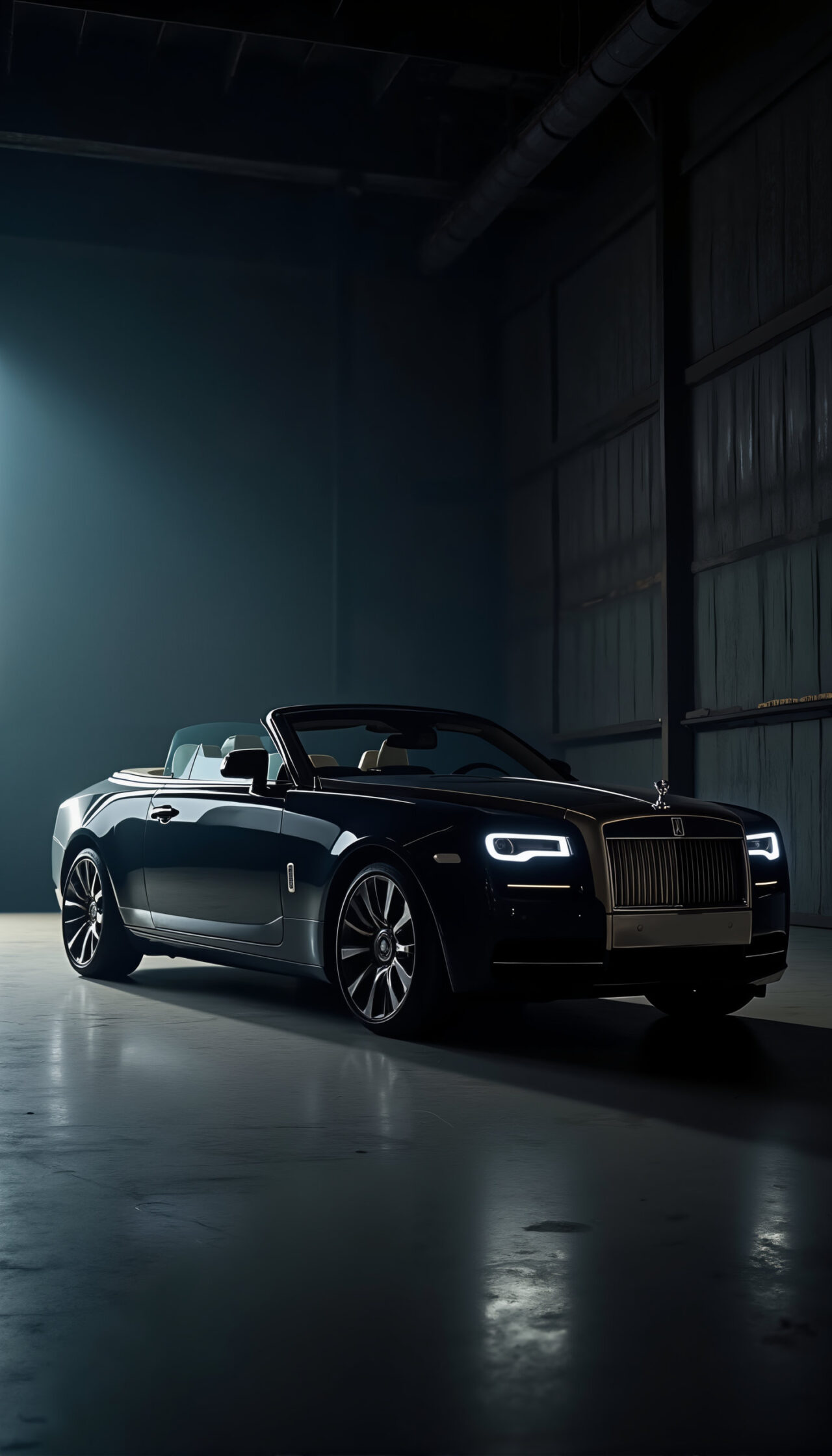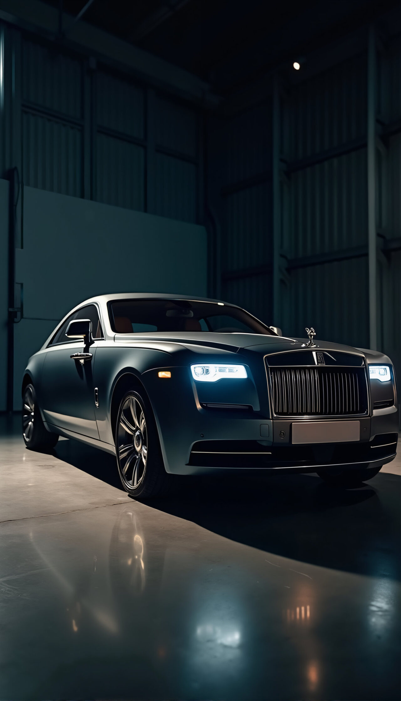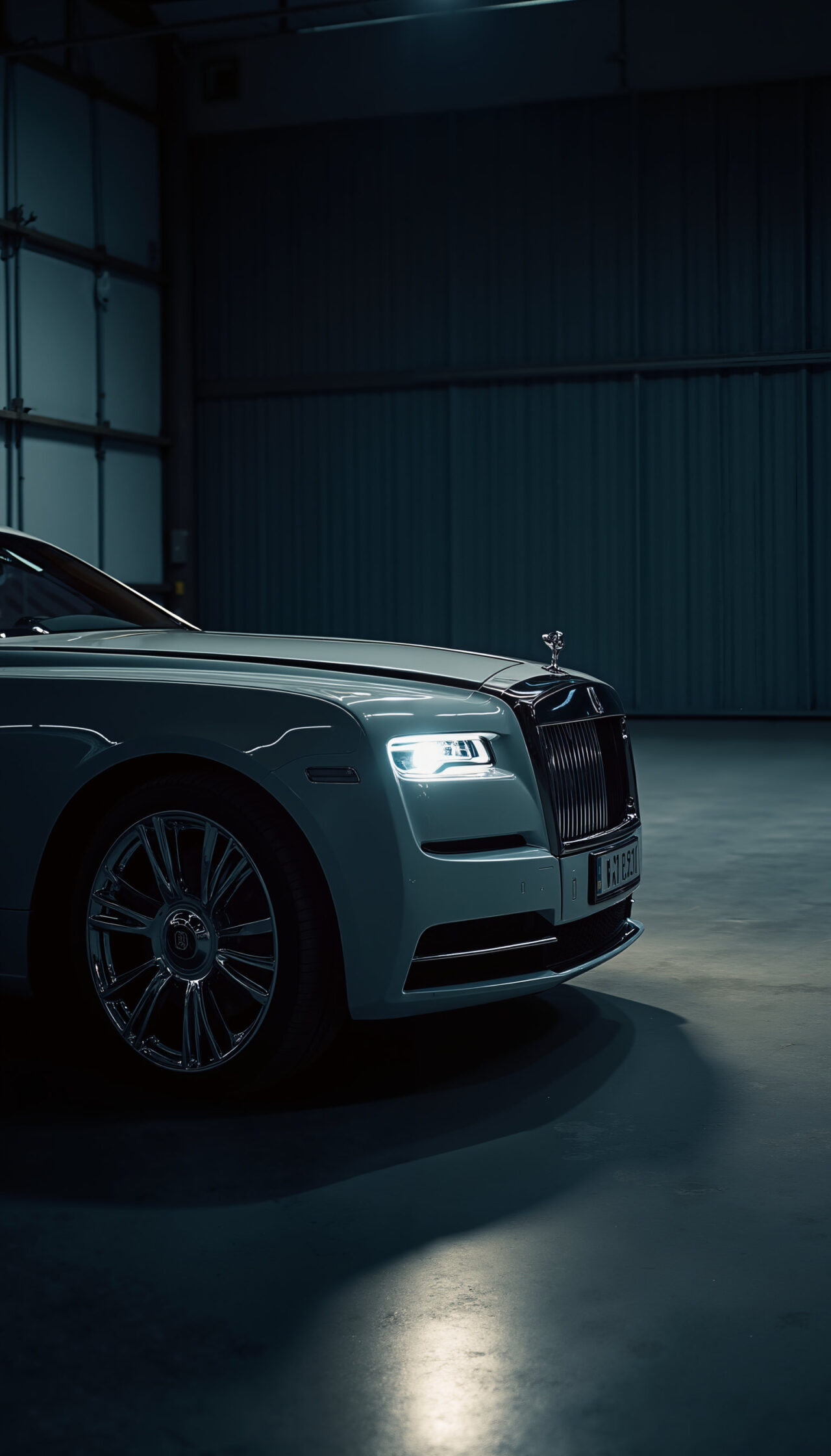 Rolls-Royce is a luxury automotive series capturing the iconic elegance of Rolls-Royce under cinematic low-key lighting. Polished bodywork, signature headlights and refined silhouettes reflect sophistication and power, shot inside an industrial hangar with dramatic shadows. These visuals are ideal for premium branding, automotive advertising, concept campaigns, showroom presentations, magazine layouts and high-end commercial art direction.