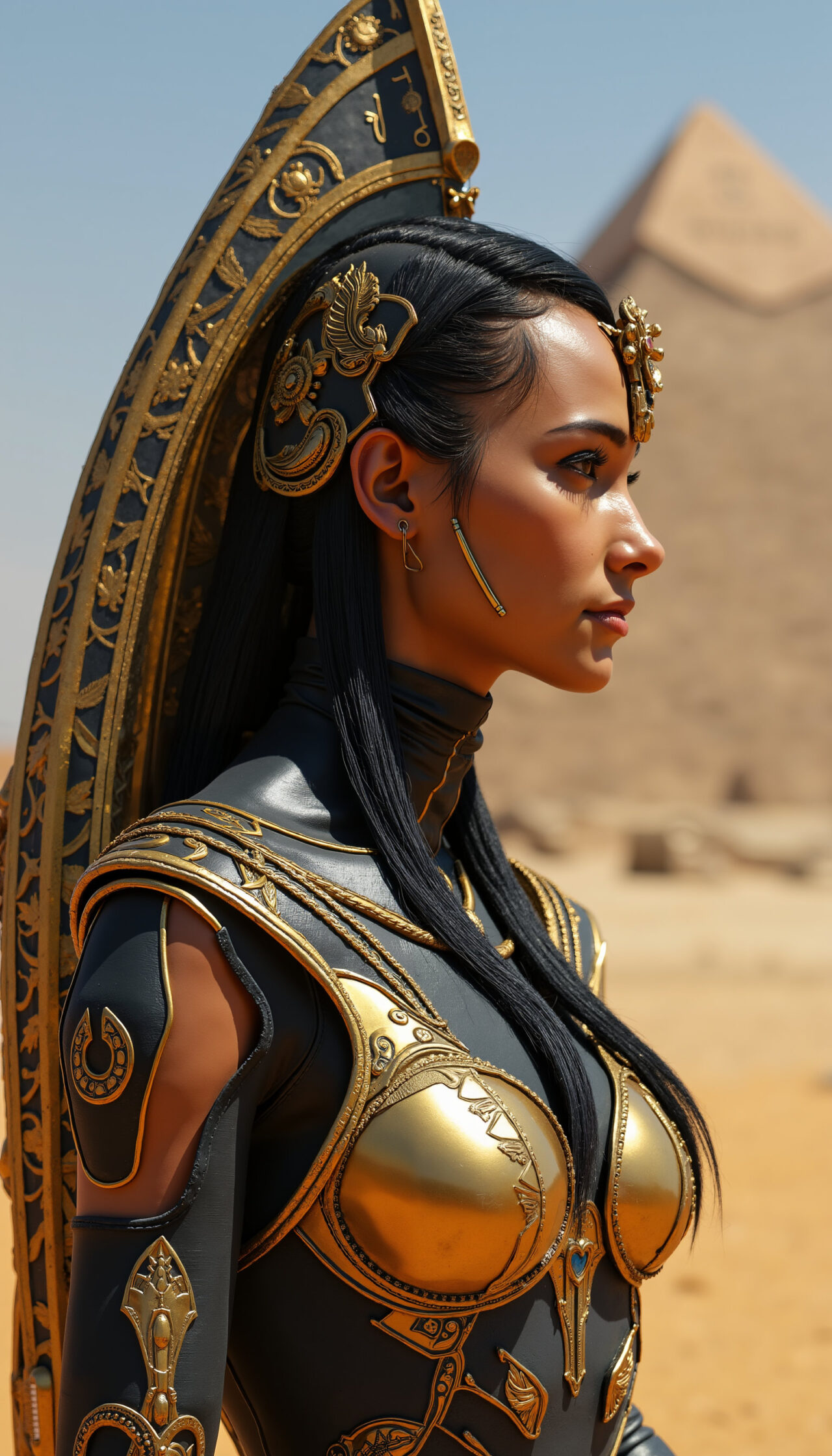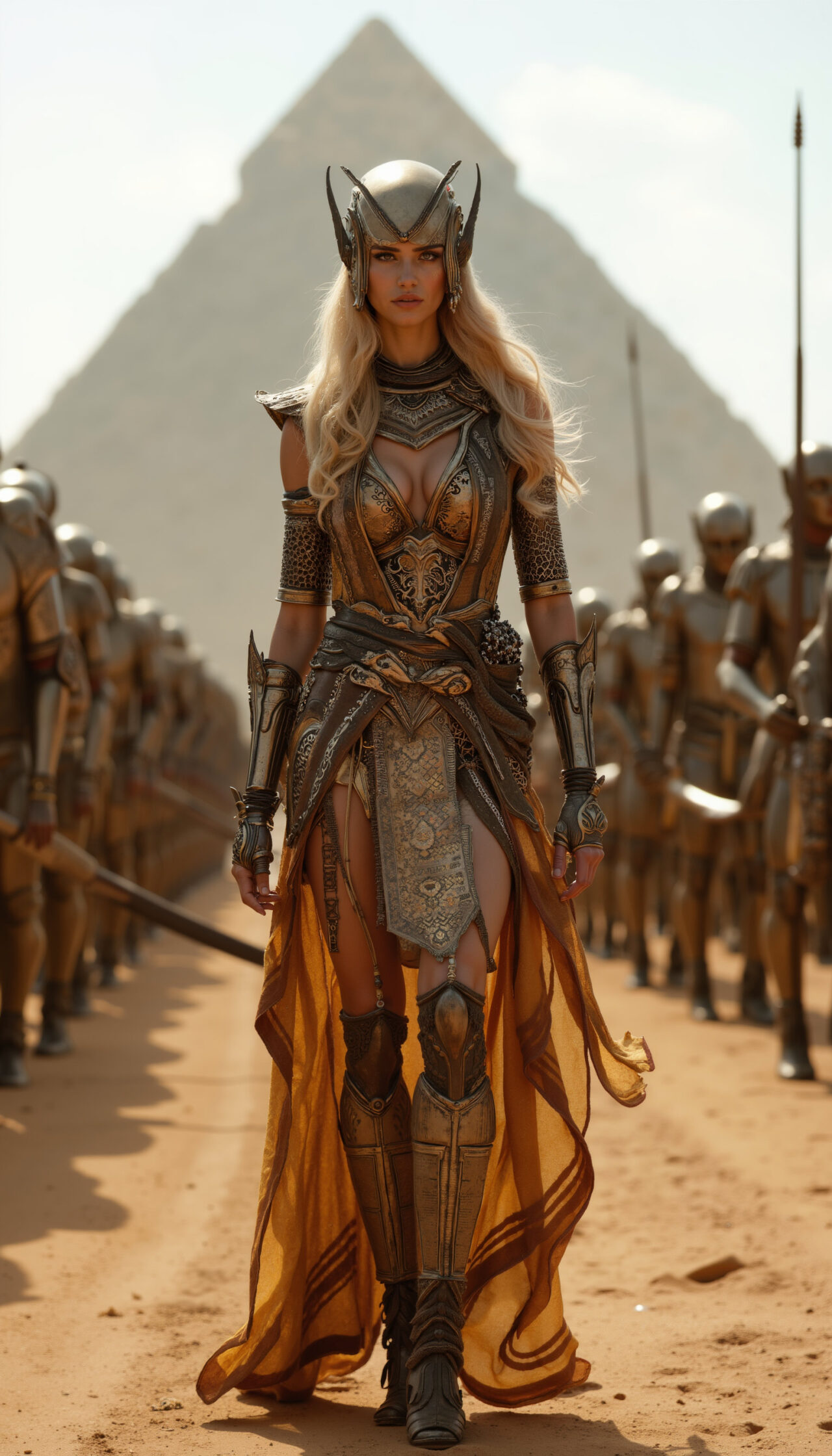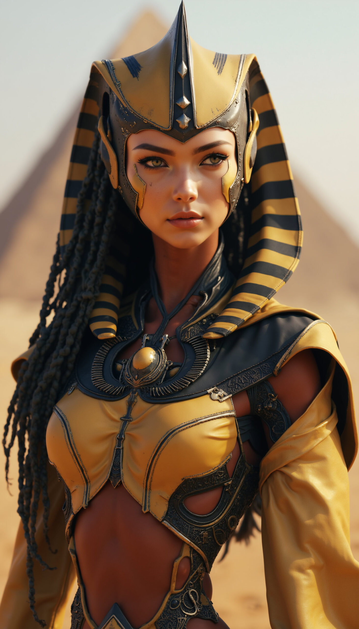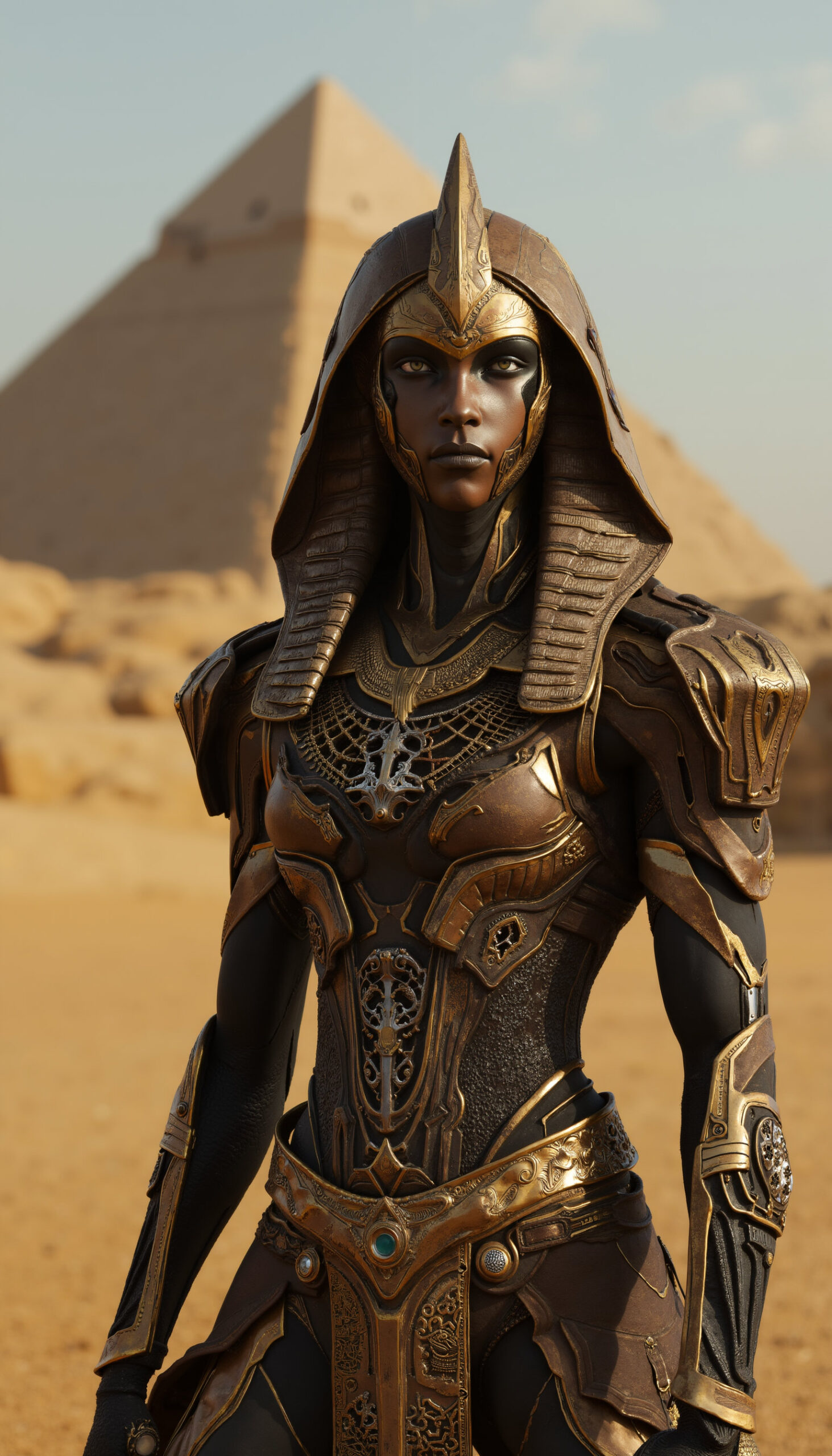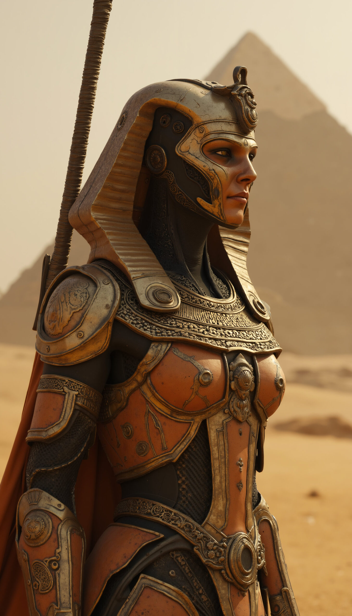 Warriors of the Dunes is a cinematic exploration of desert myth and power, where warriors stand like living statues beneath ancient pyramids. Ornate armor, sand-washed light, and regal poise shape a world of strength and mystique. These visuals can serve as inspiration for creative campaigns – from fashion editorials and epic film concepts to character design, album art and branding moodboards.